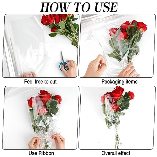 Cellophane per Imballaggio, 30M x 80CM(Piegato 40cm) Pellicola di Cellophane Regalo, Cellophane per Imballaggio Trasparente, Involucro di Cellophane per Fiori, Frutta, Regali e Artigianato