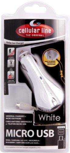 Cellular Line CBRARMICROUSB1W Carica batterie da auto con cavo riavvolgibile, micro-USB, Bianco