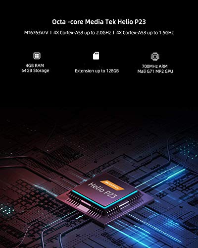 ★ 4 GB di RAM + 64 GB di Memoria ROM e Android 9.0 Pie ★ N20 Si Equipaggia Con il Processore Helio P23 e funziona insieme all'ultimo succinto Android 9 Pie e 4 GB di RAM e 64 GB di memoria (espandibile fino a 128 GB), funziona sul multitasks più veloce e fluido con molto più basso consumo energetico, raggiungere l'efficienza e l'efficienza energetica.