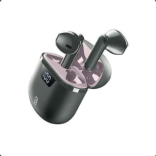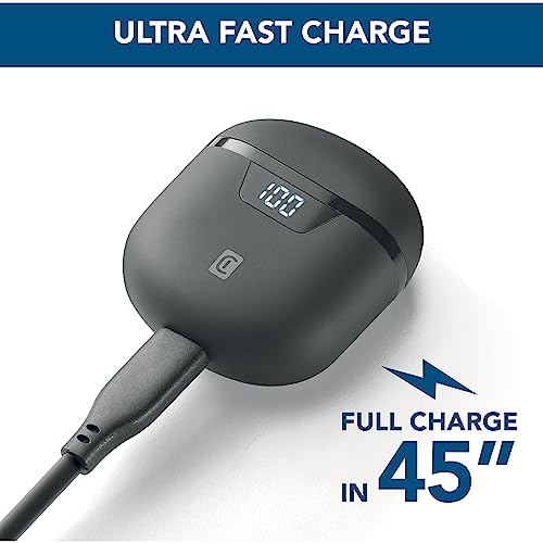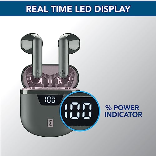 Cellularline | SEEK PRO | Auricolari Senza Fili con Custodia di Ricarica - Ricarica Veloce: 45 Minuti - Display Led: Indicazione Percentuale Carica Residua Custodia - Playtime: 15 Ore - Grigio