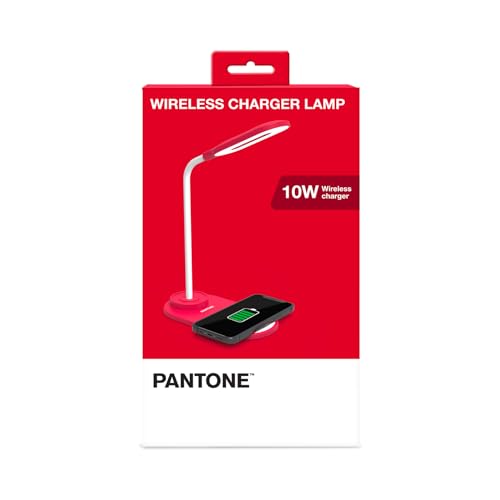 Celly, Lampada Linea Pantone, Lampada da Tavolo LED con Caricabatterie Wireless di 10W, Tonalità della Luce Regolabile, Compatibilità Universale, Colore Rosso