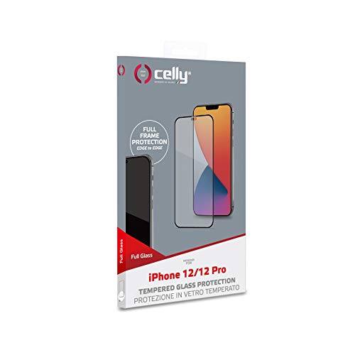 Celly Pellicola proteggi schermo 2D per iPhone 12/12 Pro, vetro temperato durezza 9H, anti-impronte e antigraffio, bordo nero