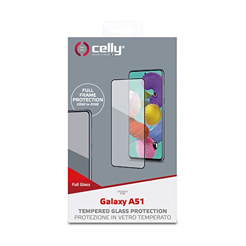 Celly Pellicola proteggi schermo per Samsung Galaxy A51, vetro temperato durezza 9H, anti-impronte e antigraffio, nero