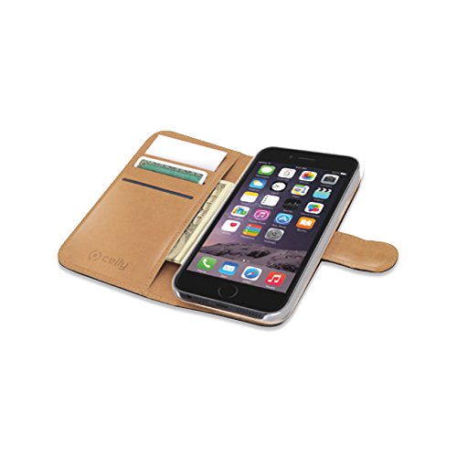 Celly Wally Custodia a Portafoglio per iPhone 6S, Finta Pelle, Nero