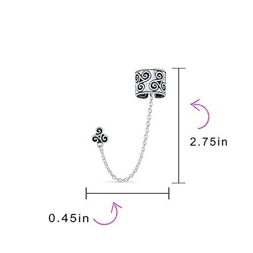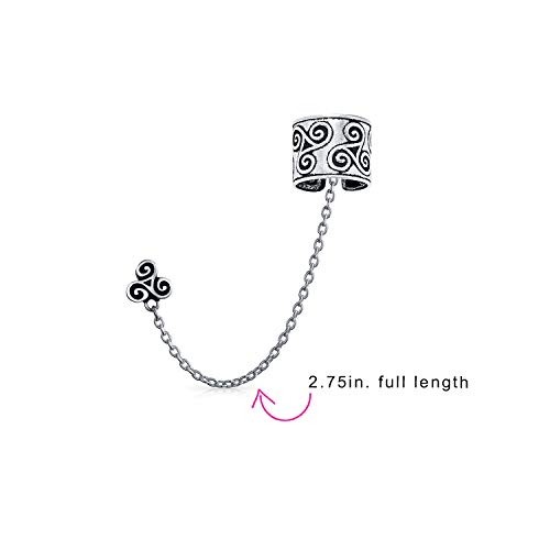 Celtic Irish Trinity Triskele Wrap Cartilage Ear Cuff Chain Pierced Ear Stud Earrings 1Pcs ossidato .925 Sterling Silver