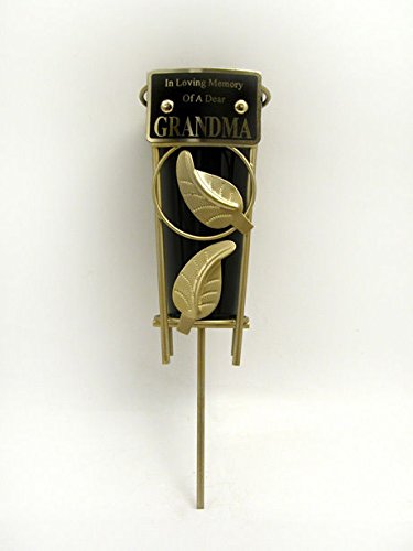 Cemetery Grave vase with Spike, In metallo, con scritta "In Loving Memory of a cuore Include plaque. GRANDMA", In plastica, colore: nero inserto vaso.