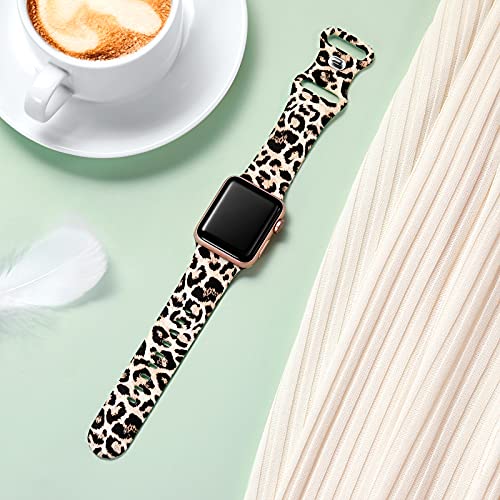 CeMiKa Cinturini Floreali Compatibili con Apple Watch Cinturino 38mm 40mm 42mm 44mm, Cinturino Sportivo Sostitutivo con Motivo Compatibile con iWatch SE/Series 6 5 4 3 2 1, 38mm/40mm-S/M Leopardo