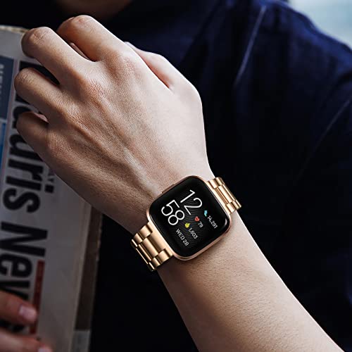 Materiale premium: questo cinturino compatibile con fitbit versa cinturino è realizzato in acciaio inossidabile di alta qualità, la superficie è lucidata e colorata mediante placcatura sottovuoto, durevole, resistente all'usura, antiruggine, garantisce un uso prolungato.
