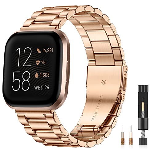 CeMiKa Cinturino Compatibile con Fitbit Versa/Versa 2 Cinturini, Braccialetti Regolabili Inossidabile con Doppia Fibbia Pieghevole per Versa 2 Strap/Versa Lite Smartwatch, Donne Uomini, Oro Rosa
