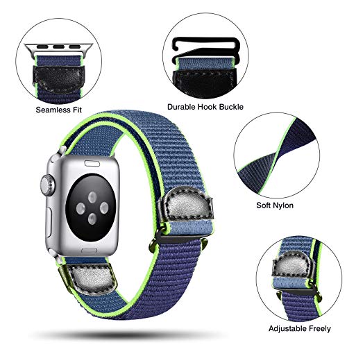 CeMiKa Cinturino Nylon Compatibile con Aple Watch 44mm 40mm 38mm 42mm, Traspirante Nylon Sportivo di Ricambio Cinturino Compatibile con Aple Watch SE/iWatch Series 6 5 4 3 2 1, 42mm/44mm, Blu Verde