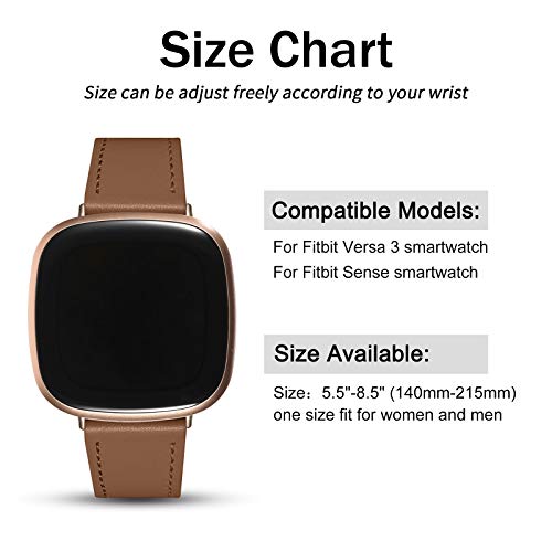 Modelli compatibili -CeMiKa cinturino di ricambio in pelle compatibile con Fitbit Sense 2/Fitbit Sense/Fitbit Versa 4/Fitbit Versa 3 Smart Watch. Per adattarsi: 5,5"- 8,5" (orologio non incluso)