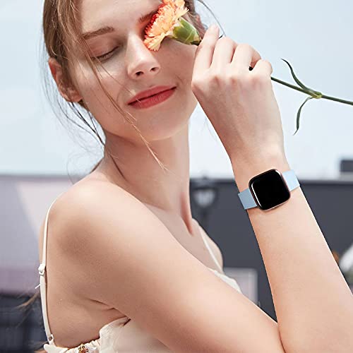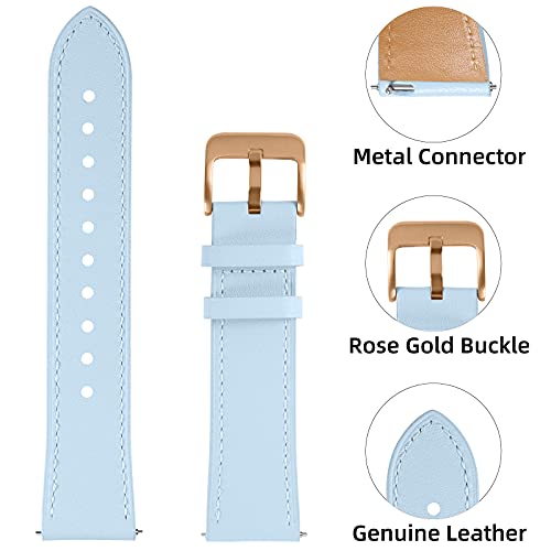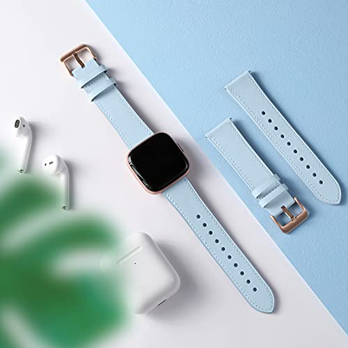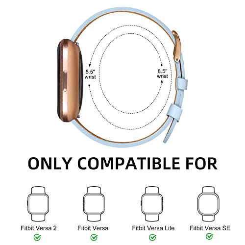 CeMiKa Cinturino in Pelle Compatibile con Fitbit Versa Cinturino/Fitbit Versa 2 Cinturino, Cinturini di Ricambio in Classico Pelle Compatibile con Fitbit Versa/Versa 2/Versa Lite/SE, CieloBlu/Oro Rosa
