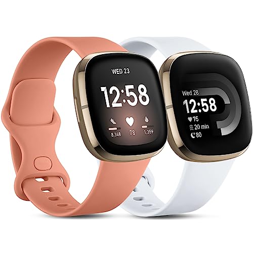 CeMiKa Compatibile con Fitbit Versa 4/Versa 3 Cinturino/Fitbit Sense/Sense 2 Cinturino, Morbido Sportivo di Ricambio Cinturini Compatibile con Fitbit Versa 4/Versa 3/Sense, Piccolo Rosa/Bianco
