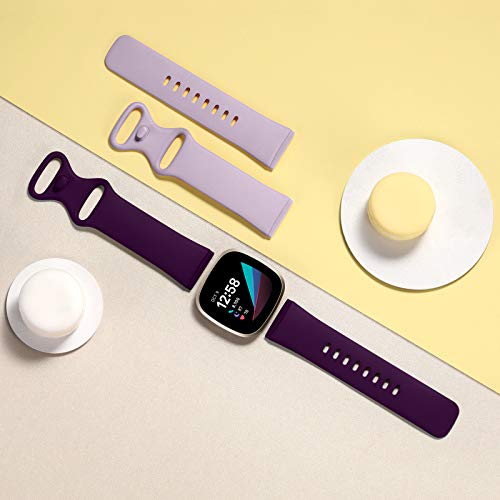 CeMiKa Compatibile con Fitbit Versa 4/Versa 3 Cinturino/Fitbit Sense/Sense 2 Cinturino, Morbido Sportivo di Ricambio Cinturini Compatibile con Fitbit Versa 4/Versa 3/Sense, Grande Lavanda/Prugna