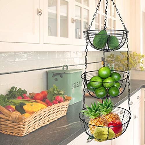 CENBEN 3 Ciotole da Appendere con Gancio a Soffitto 84 cm Cesto di Frutta in Tre Pezzi Frutta in Ferro Appesa per Mettere Frutta o Decorazioni per la Casa Fruttiere Appendibili