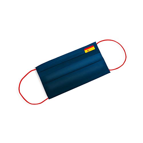 Maschera con design esclusivo della bandiera della Spagna di Cencibel. Maschera blu marino con piccola bandiera che include lo stemma in alto a sinistra. Porta gli elastici in rosso con la bandiera