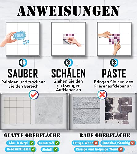 Cendray 20 Pz Adesivi per Piastrelle Antiolio Impermeabile PVC Autoadesivo Decorazione Stile Mosaico Adesivi per Bagno Cucina Parete Fai da Te (10x10cm,Viola)