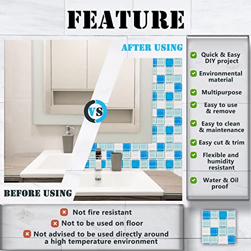 Bellissimo Design - Decalcomanie adesive per piastrelle in PVC stampate realistiche e belle che sembrano vere piastrelle. Puoi decorare la tua cucina e il bagno, le pareti o le scale. Diventerà molto bello dopo aver applicato l'adesivo! Sebbene sia super resistente, non è consigliabile attaccare decalcomanie sulle piastrelle del pavimento.