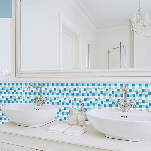 Cendray 20 Pezzi Adesivi per Piastrelle,Antiolio Impermeabile PVC Autoadesivo Decorazione,Stile Mosaico Cucina Adesivi per Piastrelle per Bagno (20x20cm,Blu)