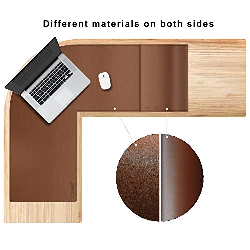 CENNBIE doppia faccia sottomano scrivania angolare,110x130x40cm Tappetino Scrivania pelle a forma di L,estesa tappetino mouse pelle impermeabile e antiscivolo ,per Casa/Ufficio(Marrone)