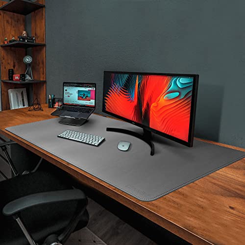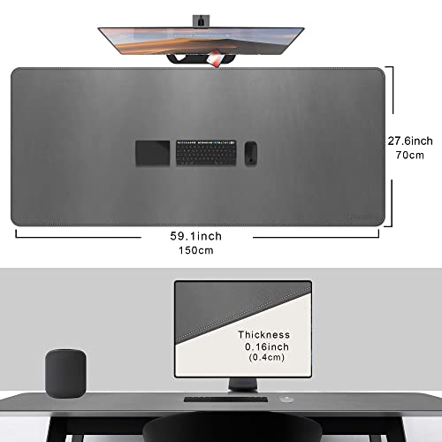 CENNBIE Tappetino Scrivania pelle,150x70cm sottomano scrivania pelle, tappetino mouse pelle antiscivolo impermeabile estesa ,tappetino scrivania grande per Casa/Ufficio(grigio)