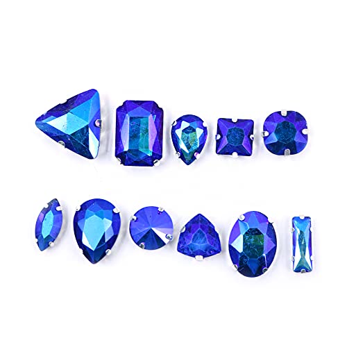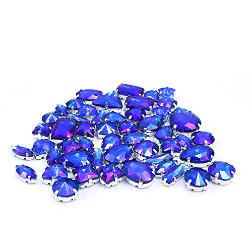 CENPEK AB - 50 bottoni in acrilico trasparenti da cucire su strass sfaccettati con retro piatto, per abiti e decorazioni (blu AB)