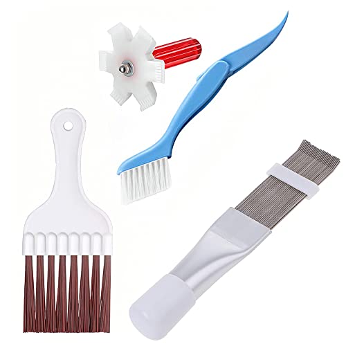 CENPEK - Set di 4 pezzi per la pulizia del condensatore del condizionatore d'aria, spazzole e pettine in acciaio inox per pulire bobina, frusta e alette di condizionatore e frigorifero