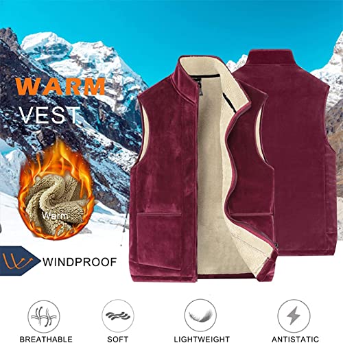 CENPENYA Gilet Uomo in Pile Termico Fodera in Lana di Agnello Inverno Gilet Antivento Giacca Collo Alto Senza Maniche con Tasca con Cerniera Casual Lavoro Sportivo Gilet (Color: Red, Size: X)