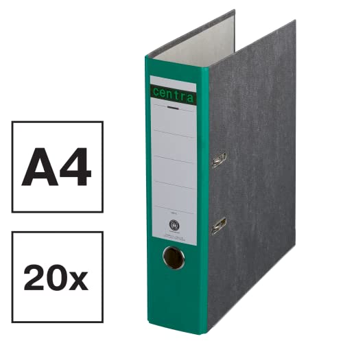 Contenuto della confezione: raccoglitore standard Centra, carta marmorizzata a nuvole, grigio con dorso verde, 220124, dimensioni 80 x 317 x 285 mm, A4, doppia foratura.