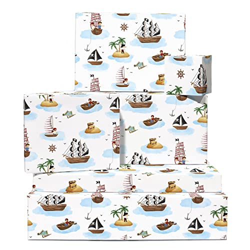 Central 23 - Carta da regalo per bambini, 6 fogli di carta da regalo per bambini, motivo: pirata e avventura, motivo: Ship Island Adventure Sea