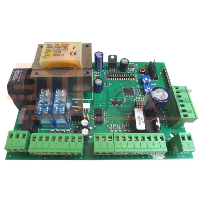 Centrale Di Comando per Cancello a Battente Con 1 / 2 Motori a 230V, Con Regolazione Amperometrica. Perfettamente Compatibile Con: FAAC 455D Universale CARATTERISTICHE TECNICHE: funzioni di condominiale, passo-passo, chiusura automatica, passaggio pedonale, colpo d'ariete, rallentamenti, soft-start, foto apertura, foto chiusura, regolazioni del tempo lavoro, tempo pausa, tempo di sfasamento ante in apertura e chiusura, regolazioni potenza e forza dei motore, Soglie Amperometriche Con Anti-schiacciamento. Funzione spia, due fine corsa, elettro-serratura, costa meccanica NC o resistiva 8K2. Innesto per ricevente FAAC. Facile da installare grazie ai led di controllo e di diagnosi anomalie, ai morsetti estraibili e alle serigrafie sul circuito stampato. Potenza: 1HP Per Motore 750W 4A Lampeggiante: 230 VCA 40W Alimentazione Fotocellule: 24 VCC 8W Elettro-serratura: 12 VAC Lampada Spia: 24VCA 3W Temperatura Di Utilizzo: -20 +55 °C Dimensioni 160x120x45 mm Garanzia 24 Mesi