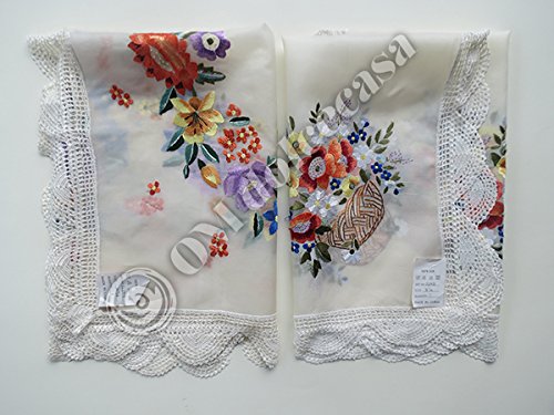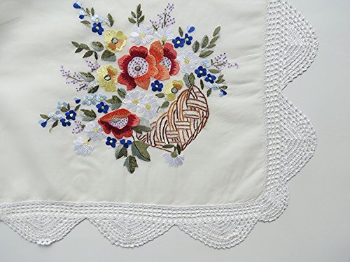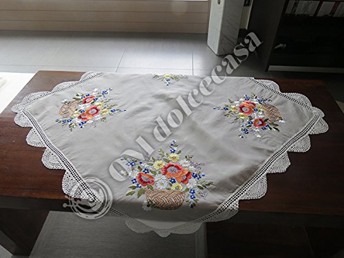 M&O Centro Centrino Centro Tavola in Seta CM 90X90 Quadrato Ricamato A Mano Disponibile in Due Modelli