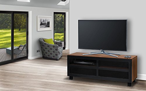 Adatto per schermi fino a 55 "Riviera offre uno spazio eccezionale per la vostra gamma completa di accessori, la porta a scomparsa rivela due scomparti con ripiani integrati che offrono quattro ripiani interni
