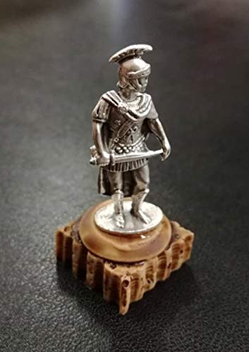 Centurione Romano Statuetta - Soldatino da Collezione - Statua in Miniatura: Modellino Soldato legionario Placcato Argento con Base in Resina Dipinta - h 5,2 cm