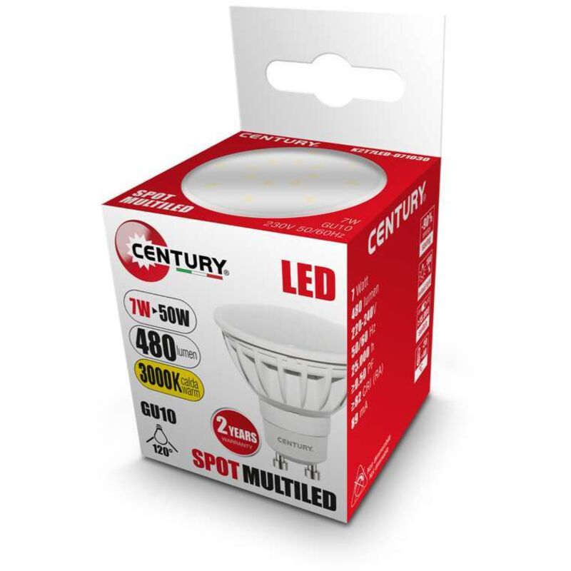 Lampada LED faretto GU10 7watt 3000K Century K2T7LED-071030 Potenza 7W (50W) Attacco GU10 Flusso luminoso 600 Lm Colore luce 3000 K (Luce calda)