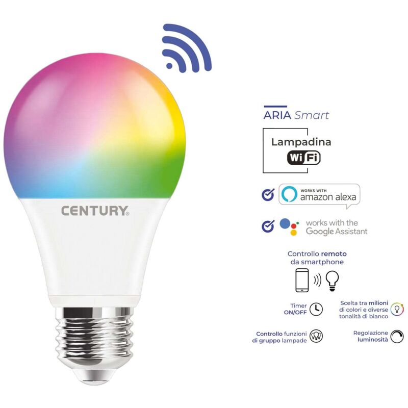 Lampada led wi-fi con tecnologia rgb, con attacco grande e27 e luce multicolori rgb: e' possibile inoltre selezionare la temperatura della luce bianca da 3000k a 6000k. equivale ad una potenza di 100w ma ne assorbe soltanto 14 sprigionando 1400 lumen.