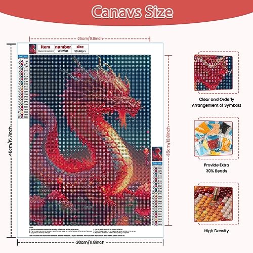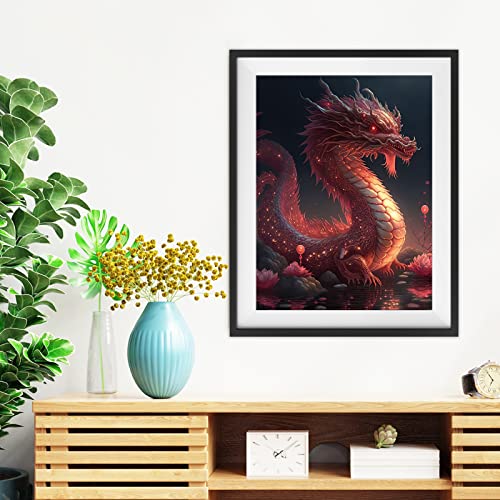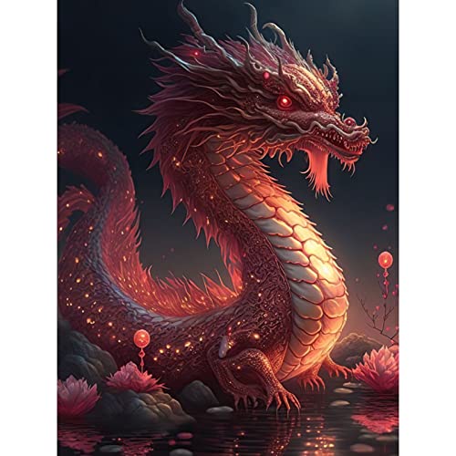 CEOVR Diamond Painting Kit Completo 5D Diamond Painting,Pittura Diamante,DIY Diamond Painting Bambini,Mosaico Diamond Art Kit Completo,Painting Diamond 5D per Decorazioni Casa (Drago Rosso1)