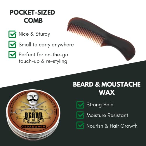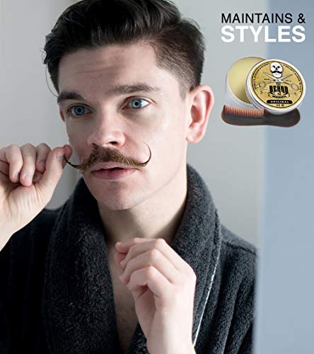 Cera per baffi e barba (15 ml) con pettine da barba tascabile, favorisce la crescita dei capelli e la resistenza all'umidità, cera per baffi e barba, tenuta forte, realizzata con tutti gli