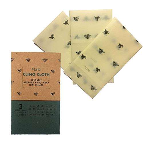 Cera d' api cling Cloth food Wrap - all Natural riutilizzabile cibo Wrap Made in the UK - varietà confezione da 3 maneggevole avvolge - Piccola, Media e Grande