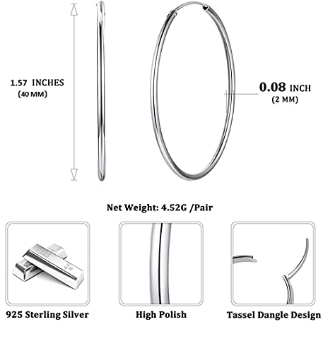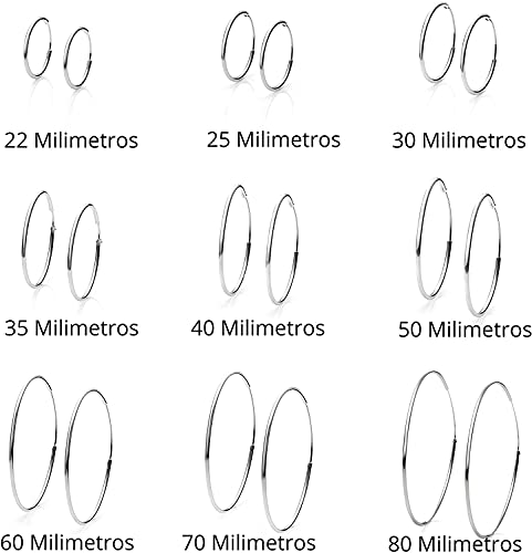 Cerchi in Argento Sterling 925, Orecchino a Cerchio Fine con Chiusura Nascosta o Cerniera - Diametro: 20,30,40,50,60 mm. Argento autenticato nel laboratorio di metalli preziosi (40 mm Narcosta)