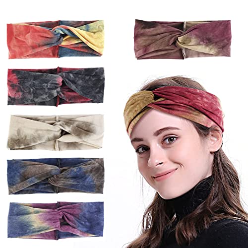 Cerchietti per capelli da donna e donna, larghi, stile boho, per yoga, sport, accessori per capelli elastici (6 pezzi)