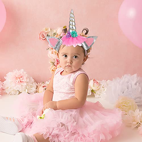 LOOK ALLA MODA - Le orecchie carine e lucenti, l'elegante corno di unicorno e i bellissimi fiori in tessuto rosa rendono i cerchietti più delicati e carini. Il bel design e i colori vivaci renderanno adorabile la tua bambina.
