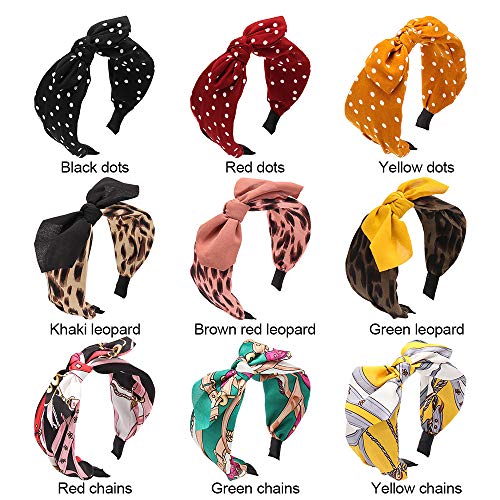 Cerchietto per capelli da donna con motivo a pois e leopardati, con nodo e orecchie di coniglio, con fascia larga (punti rossi)