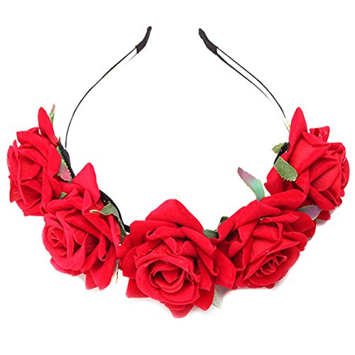 EJY Cerchietto per capelli con ghirlanda di rose, per matrimonio, Tessuto, Red, Taglia libera