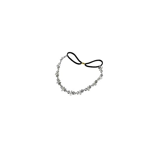Cerchietto per Capelli con Strass Argento, Fascia Elastica con Fiori, da Donna