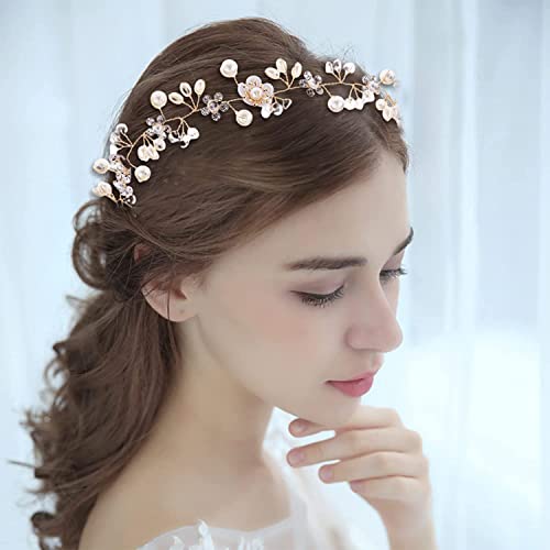 Cerchietto con Fiori Perle, Copricapo da Sposa, Accessori per Capelli da Sposa, Fascia per Capelli Perle Fiori Vite, Fasce da Donna Wedding Hair Accessories, Capelli Tiara Per Ragazze Donne