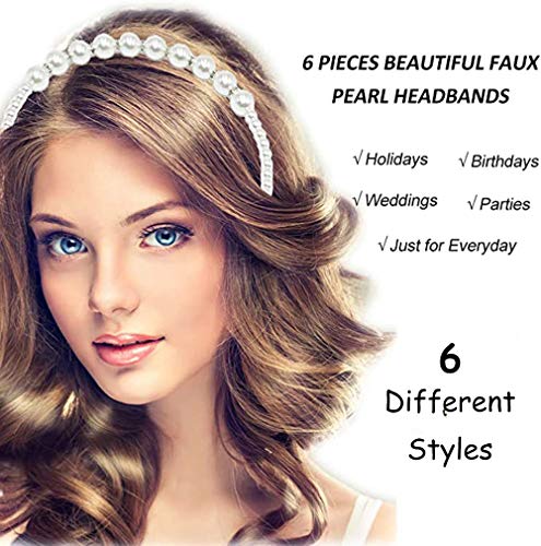 Cerchietto Perlato, 6 Pezzi Elegante Fascia Perlata, Fasce Perline di Perle, Cerchietto per Capelli con Perle Sintetiche, per Donne Ragazze Accessori Capelli da Festa Nuziale (6 Stili Diversi)