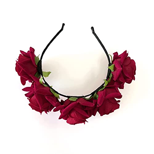 JZK Cerchietto rose rosse capelli fascia fiori per bambina donna per Dia De Los muertos Halloween matrimonio damigella d'onore sposa corona fiore