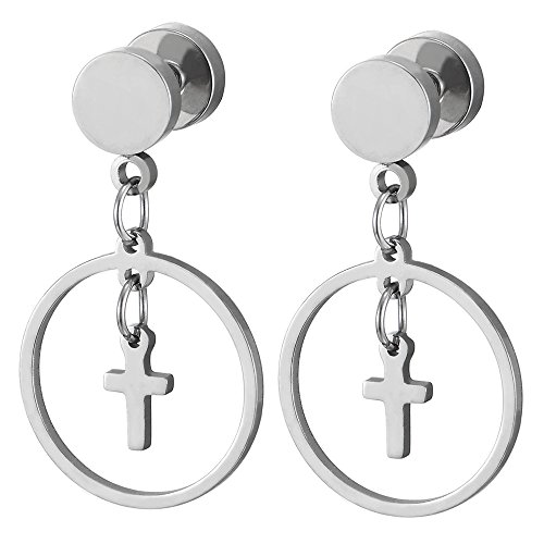 2 Cerchio Bilanciere Orecchini con Pendenti Aperto Cerchio e Croce, Orecchini da Uomo Donna, Acciaio, Riavvitare