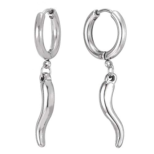 2 Cerchio Orecchini a Cerchio con Pendenti Corno Charms, Orecchini da Uomo Donna, Acciaio Inossidabile